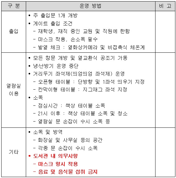1) 중앙도서관 중앙자료실은 기존대로 운영(평일 09:00~17:30)