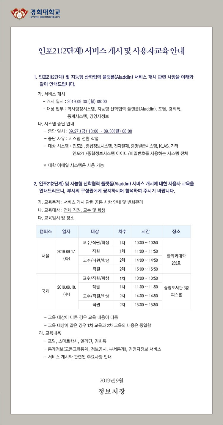 1) 사용자 교육 : 9.17(화) 서울캠퍼스(한의과대학 263호)